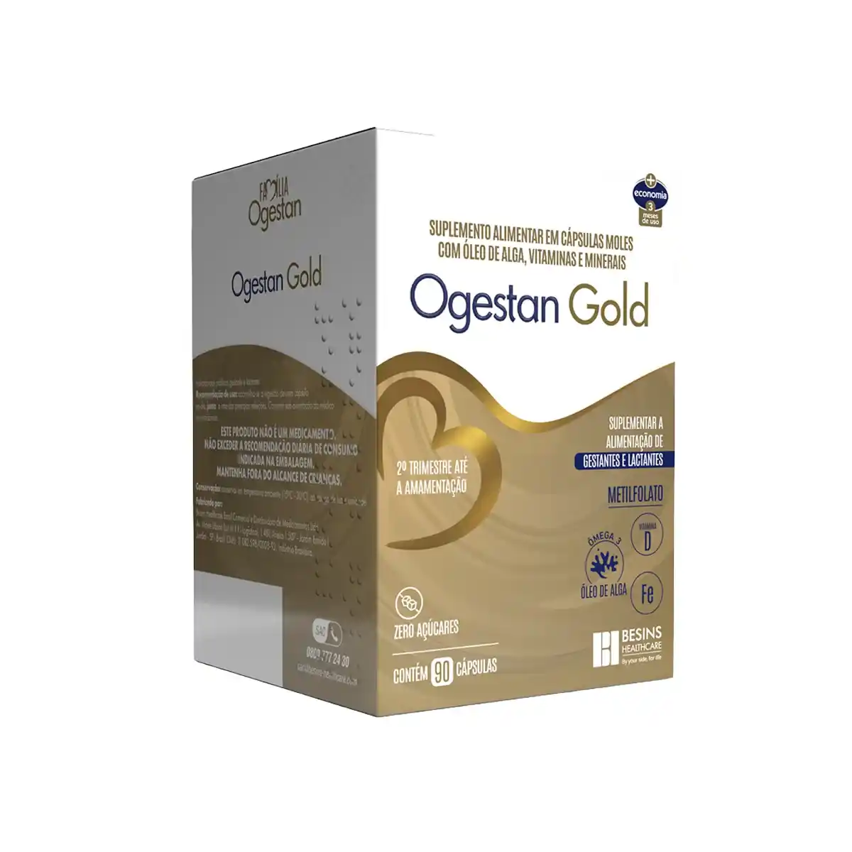 O suplemento é formulado com nutrientes essenciais como **ácido fólico, ferro, cálcio, iodo, zinco, vitamina D, vitamina B12 e DHA (ômega 3)**. O ácido fólico é fundamental para prevenir malformações no tubo neural do bebê, enquanto o ferro e o cálcio auxiliam na formação de sangue e ossos. O DHA contribui para o desenvolvimento cerebral e visual do feto e do recém-nascido. Ogestan Gold possui cápsulas gelatinosas de fácil ingestão e é produzido pela Eurofarma, referência em suplementos para gestantes.